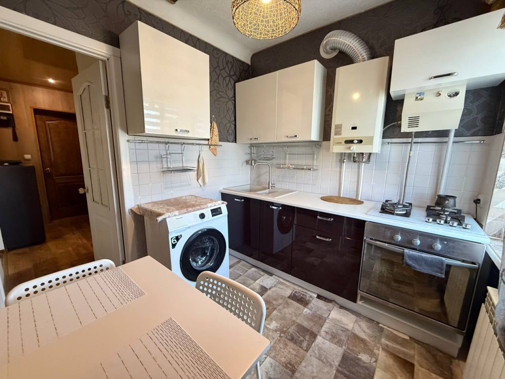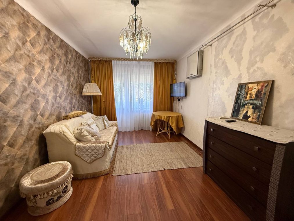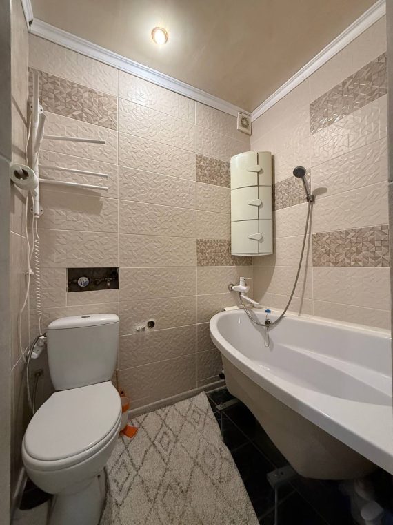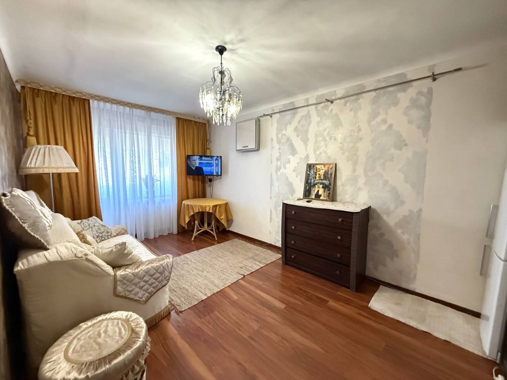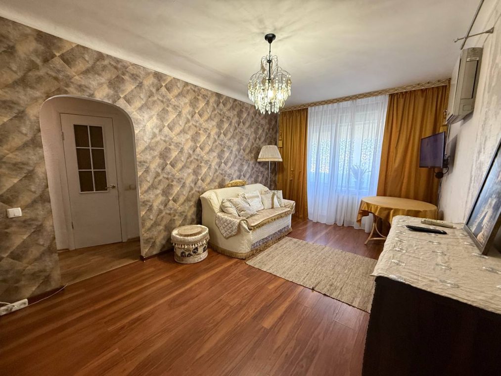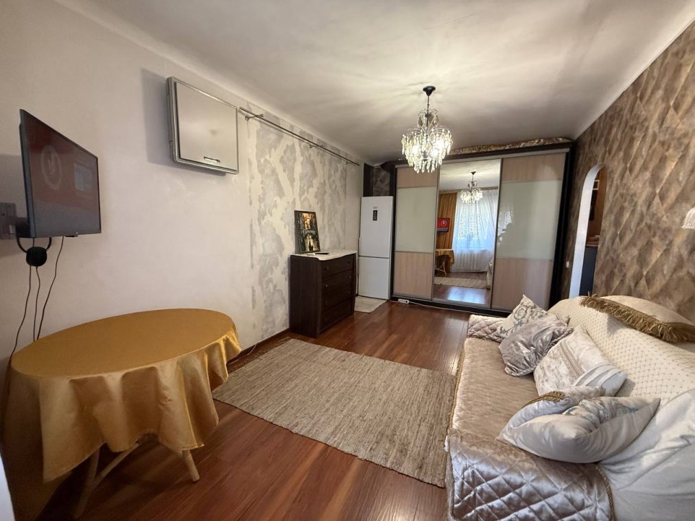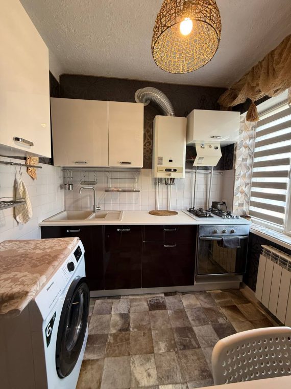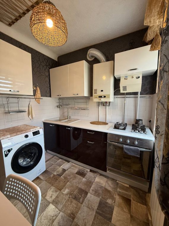 Квартира у доброму стані, укомлектована всіма меблями та технікою: телевізор, холодильник, кондиціонер, газ. колонка, пральна машина, газ. плита, духовка, витяжка. Є балкон — засклений. Можна з дітками, можна на короткий термін 1-2 міс, але без тваринок.
