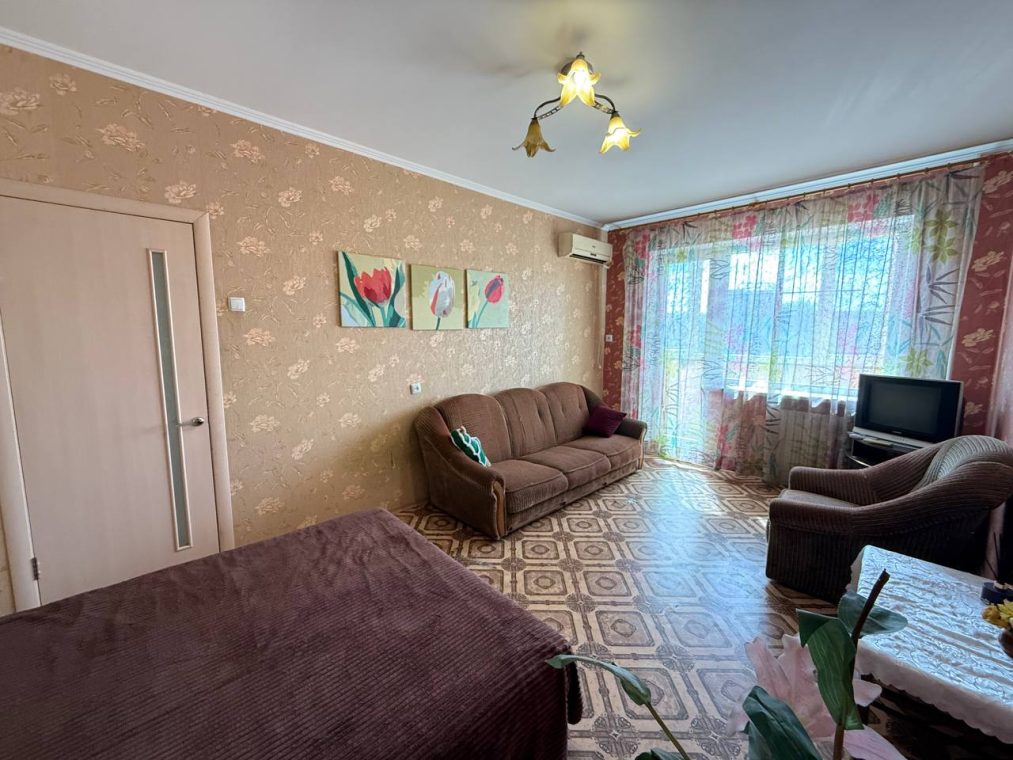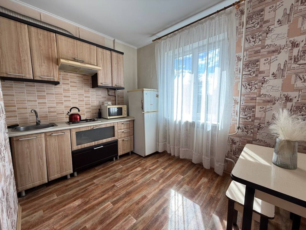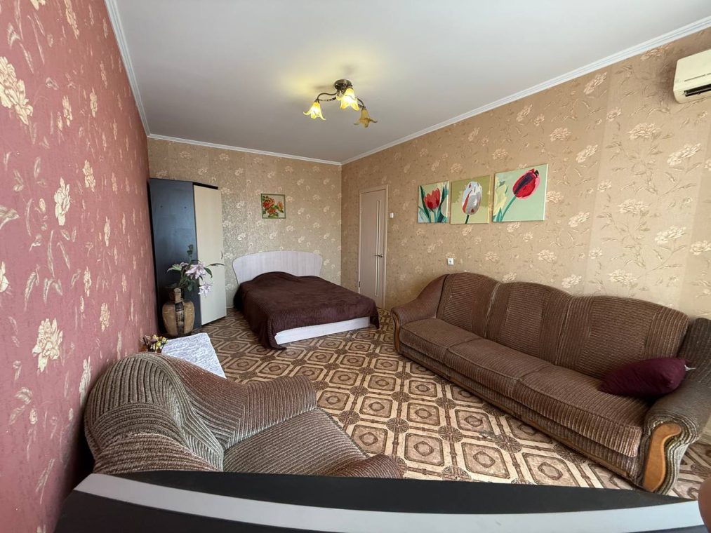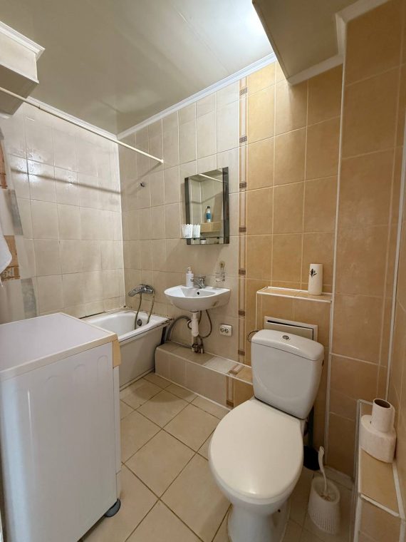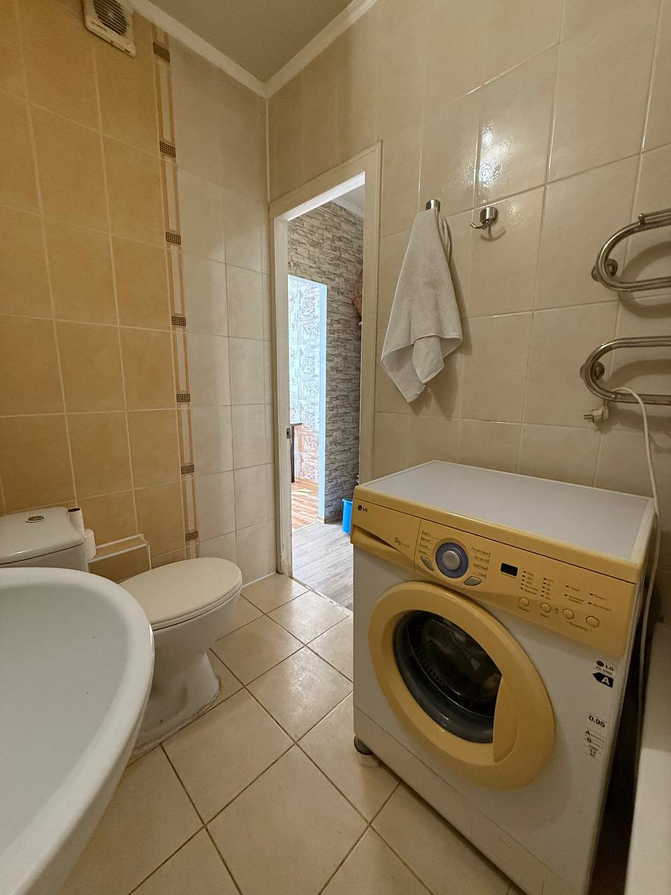 Квартира у доброму стані, укомлектована всіма меблями та технікою: холодильник, мікрохвильовка, газ. плита, витяжка, бойлер, телевізор, пральна машина, кондиціонер. Є балкон — засклений.