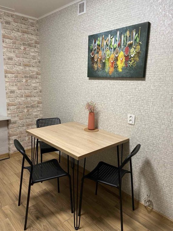 Має усю необхідну техніку та меблі для проживання (холодильник, пральна машина, бойлер, телевізор) і так само посуд, постільне й битове приладдя. Заходь та живи!