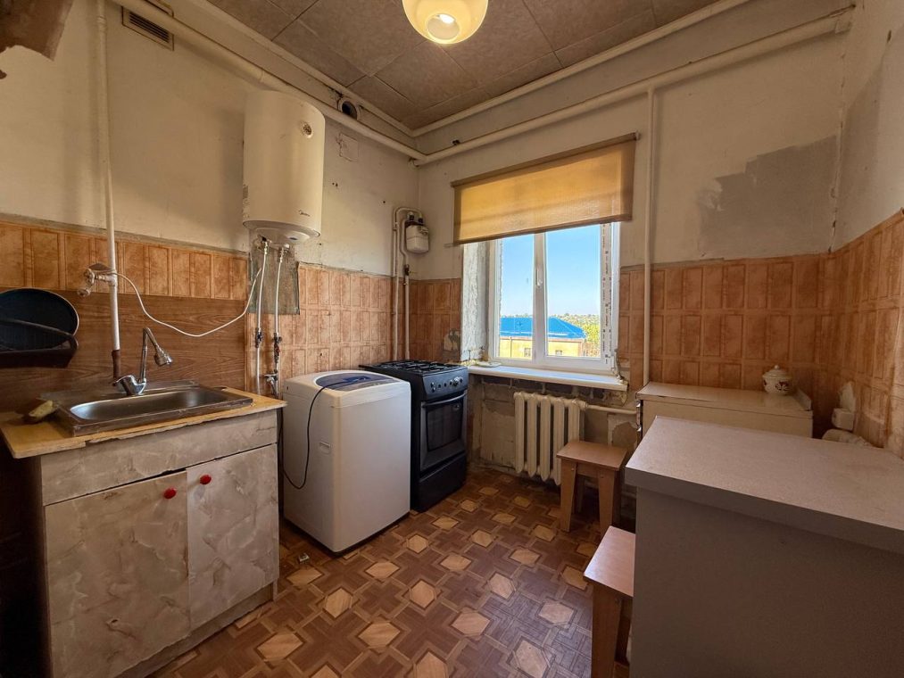 Квартира у житловому стані, укомлектована деякими меблями та технікою: телевізор, бойлер, газ. плита з духовкою, пральна машина. Є балкон — засклений. ХОЛОДИЛЬНИКА НЕМАЄ! але можна купити за рахунок оренди, також можна зробити ремонт теж за рахунок оренди.