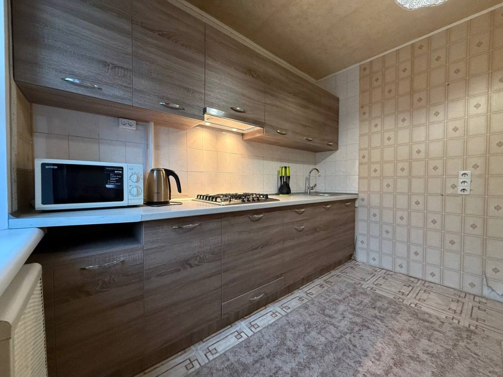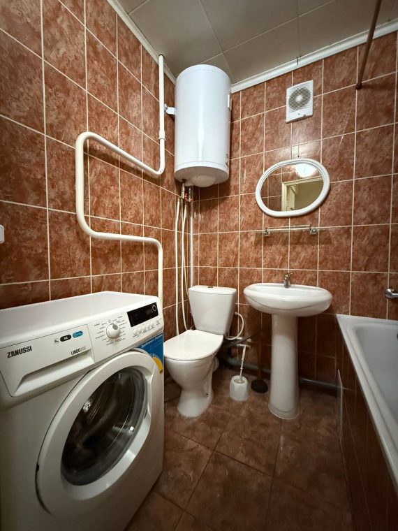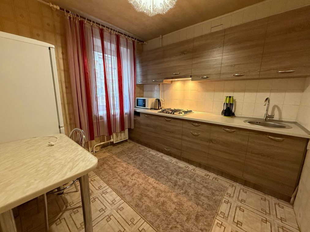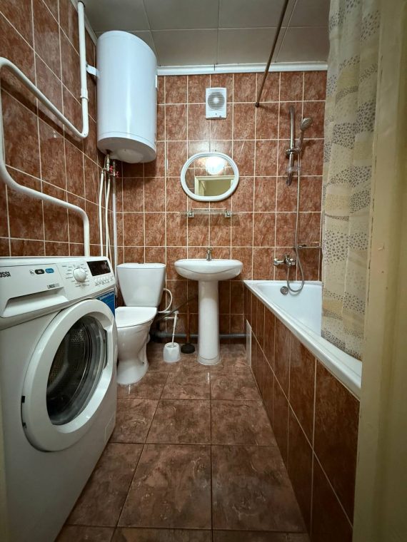 Квартира укомлектована всіма меблями та технікою: холодильник, ел. чайник, газ. плита, витяжка, кондиціонер, бойлер, пральна машина. Є балкон — засклений, також є кладовка. Закритий двір та паркомісце у подарунок.