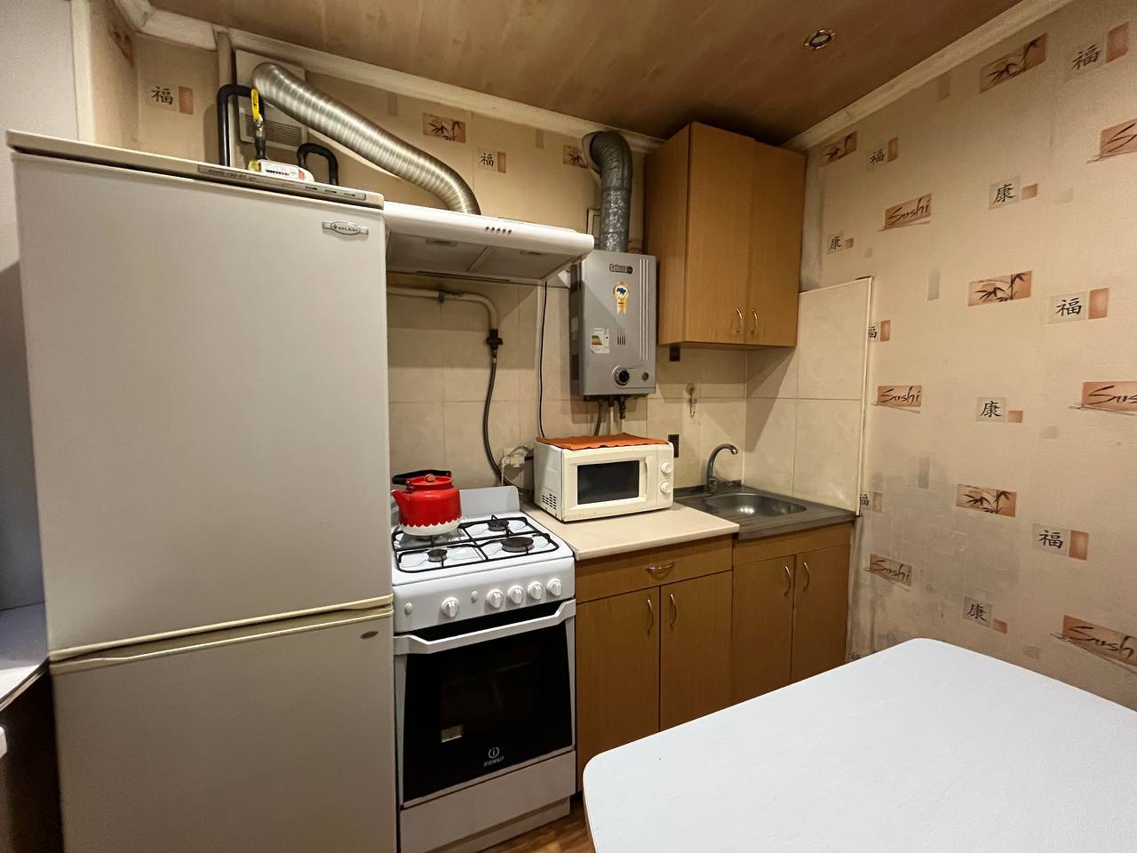 Має усю необхідну техніку та меблі для проживання (холодильник, пральна машина, газ колонка, телевізор, кондиціонер) і так само посуд, постільне й битове приладдя. Заходь та живи!