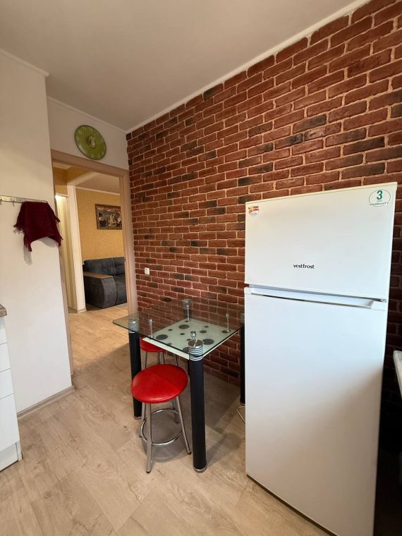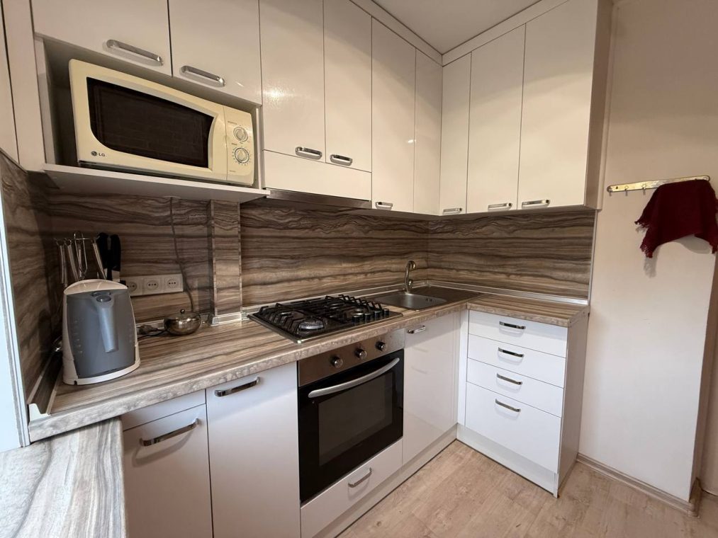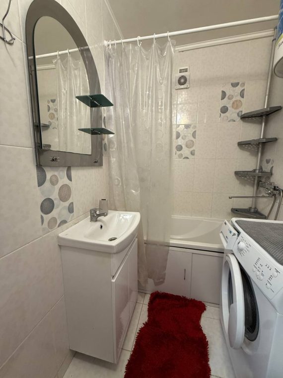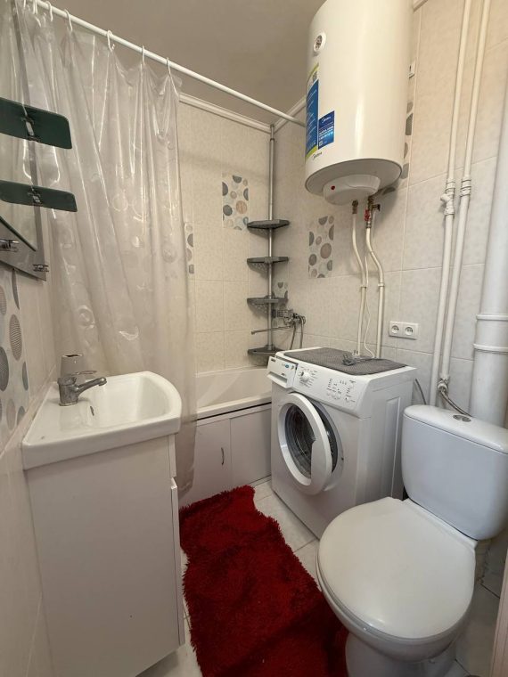 Квартира з ремонтом, укомплектована всіма меблями та технікою: бойлер, пральна машина, холодильник, ел.чайник, газ. варильна поверхня, витяжка, ел. духовка, мікрохвильовка, телевізор, кондиціонер. Є балкон — засклений.