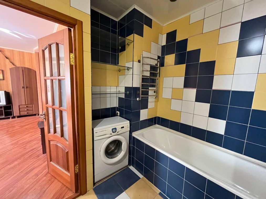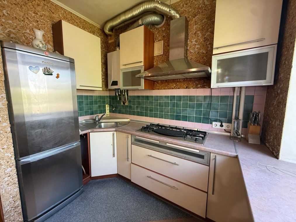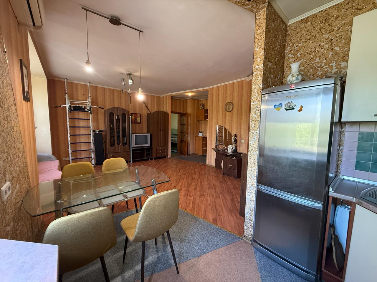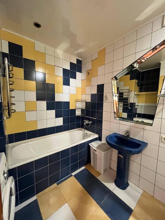 Квартира з ремонтом, укомплектована меблями та технікою: газ. котел, холодильник, витяжка, газ. плита, кондиціонер, телевізор, пральна машина. Балкона немає.