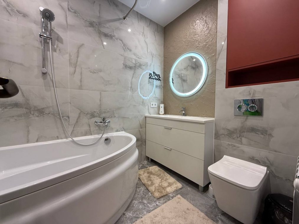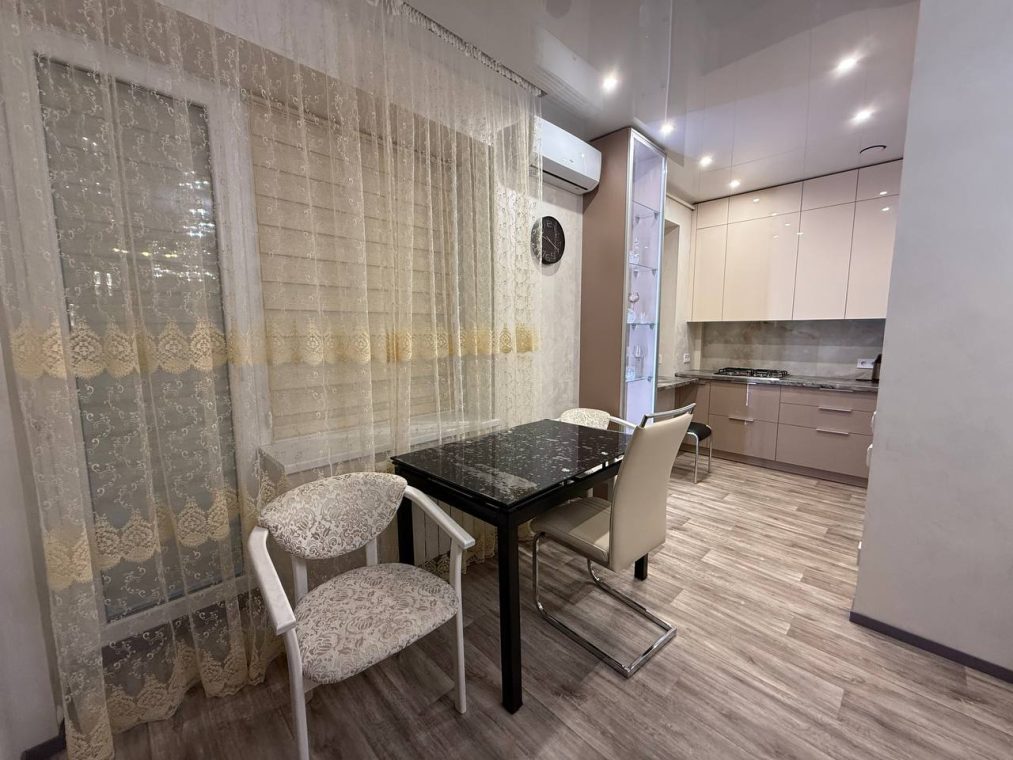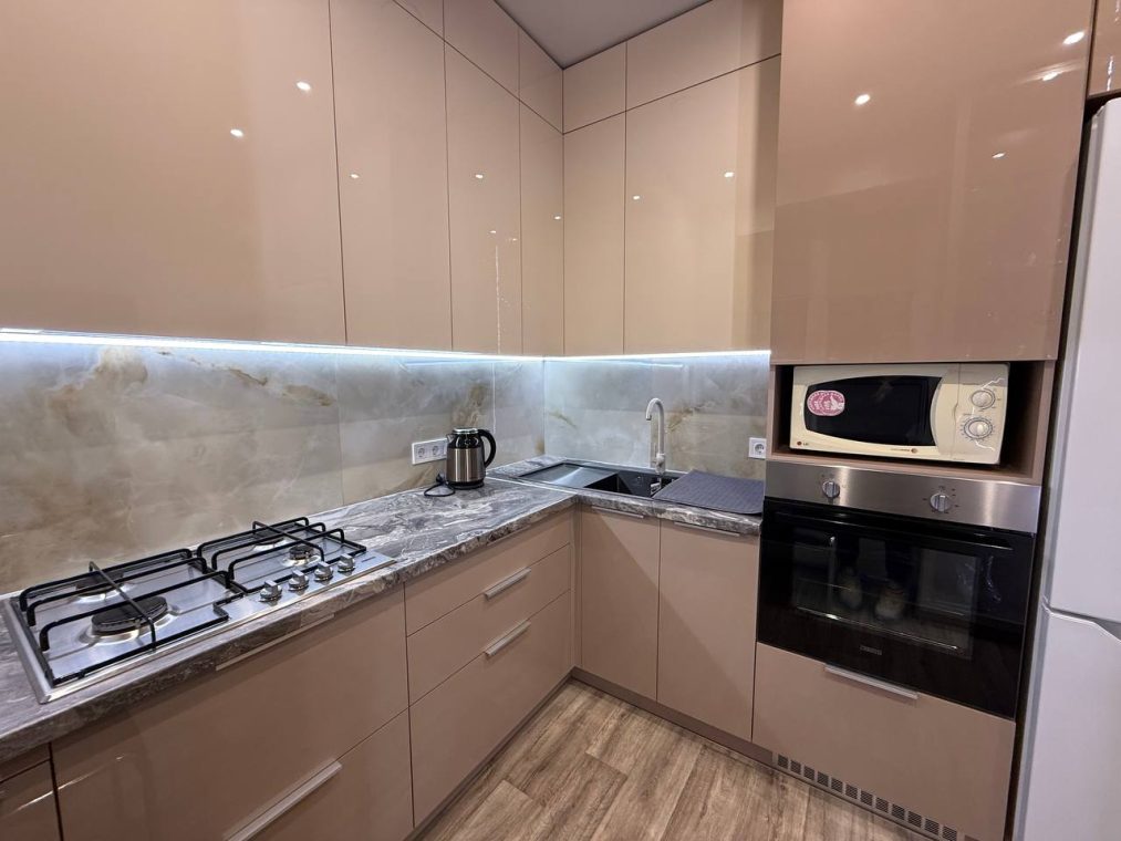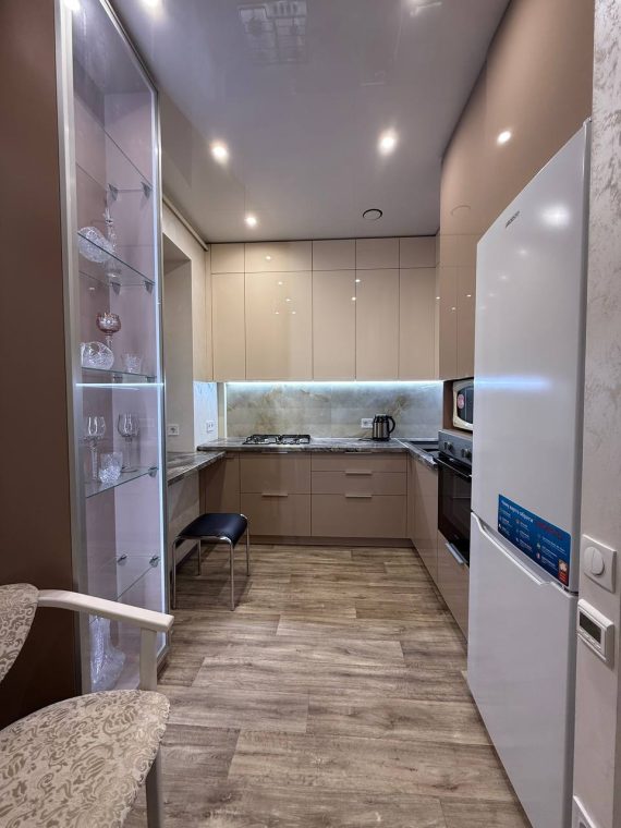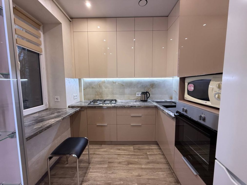 Квартира з євро ремонтом, укомплектована всіма меблями та технікою: газ. колонка, газ. варильна панель, витяжка, ел. духовка, мікрохвильова піч, ел. чайник, холодильник, 2 телевізори, 2 кондиціонери, пральна машина. Є балкон — засклений. Тепла підлога у кухні, коридорі та ванній кімнаті від центрального опалення, а коли закінчиться опалювальний сезон передбачено електрична тепла підлога також у ванні, коридорі та кухні та на балконі. Квартира утеплена зовні. Грати на вікнах.