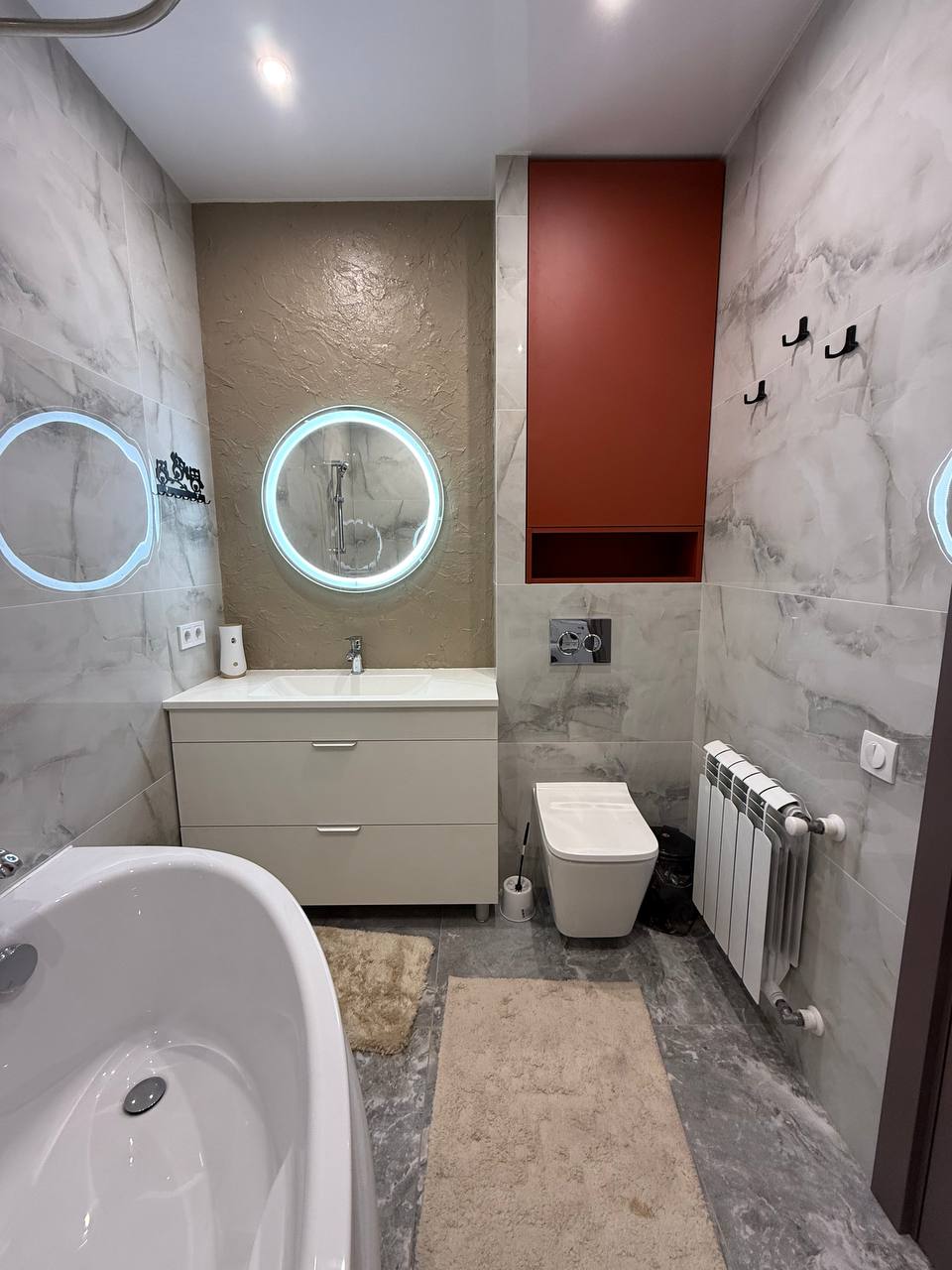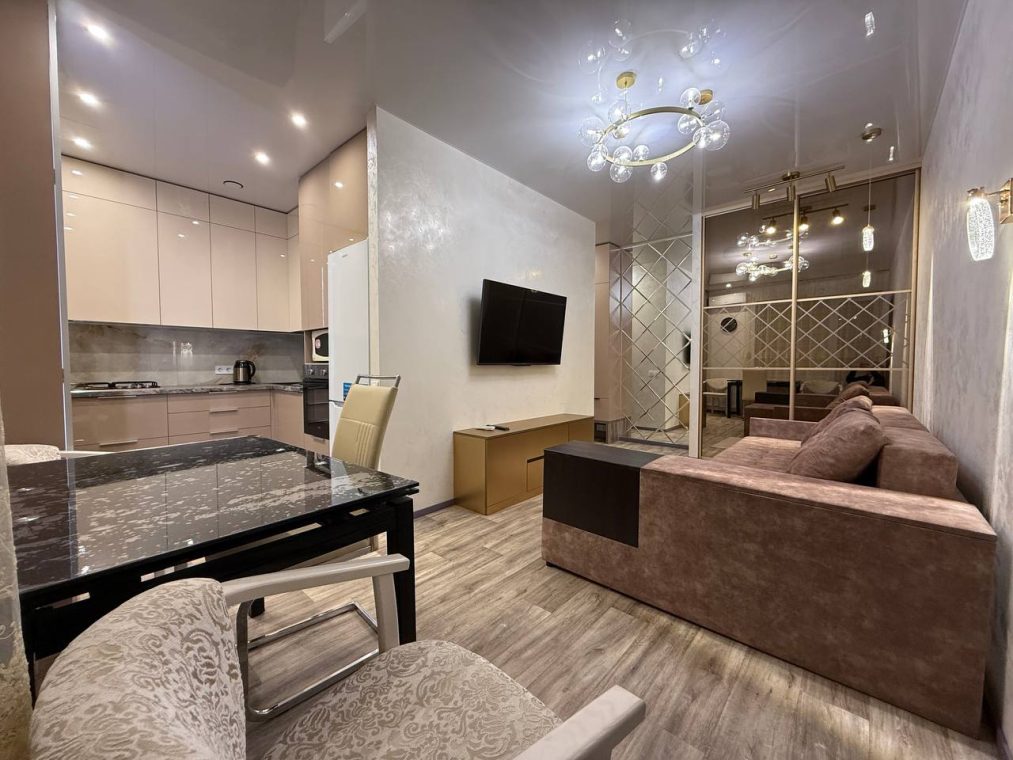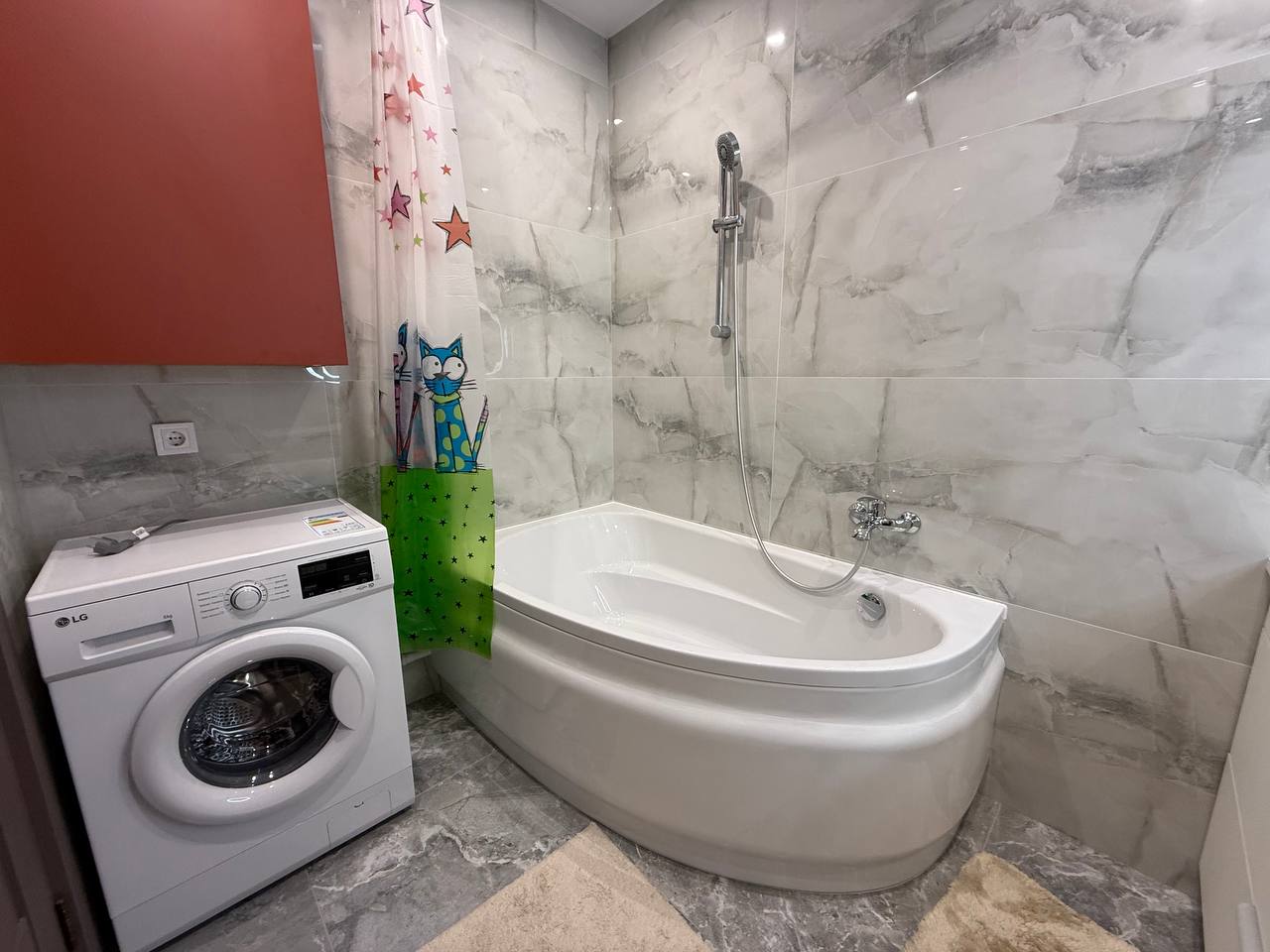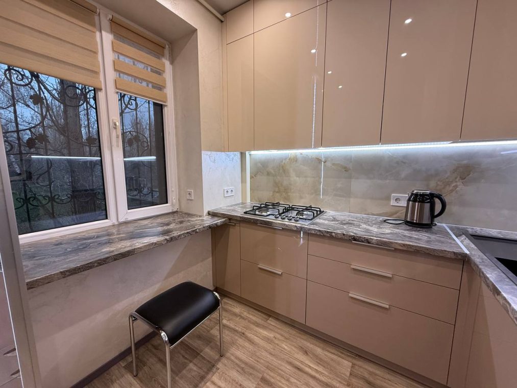 Квартира з євро ремонтом, укомплектована всіма меблями та технікою: газ. колонка, газ. варильна панель, витяжка, ел. духовка, мікрохвильова піч, ел. чайник, холодильник, 2 телевізори, 2 кондиціонери, пральна машина. Є балкон — засклений. Тепла підлога у кухні, коридорі та ванній кімнаті від центрального опалення, а коли закінчиться опалювальний сезон передбачено електрична тепла підлога також у ванні, коридорі та кухні та на балконі. Квартира утеплена зовні. Грати на вікнах.