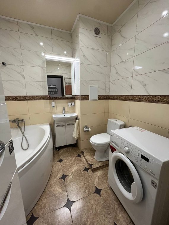 Знаходиться одразу навпроти ринку, поруч безліч магазинів, транспорт, парк, кафешки та учбові заклади. Має усю необхідну техніку та меблі для проживання.