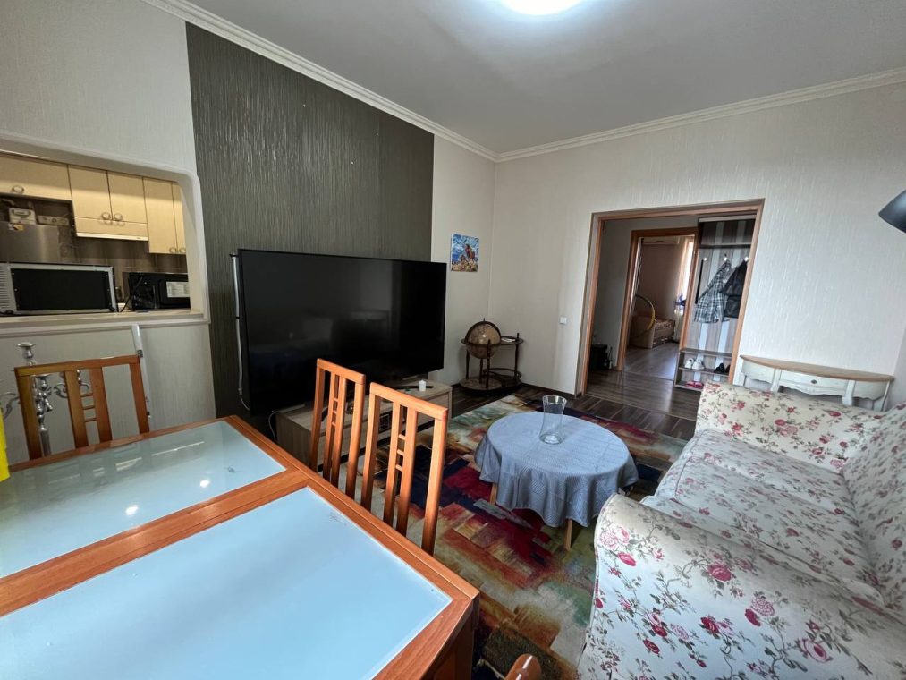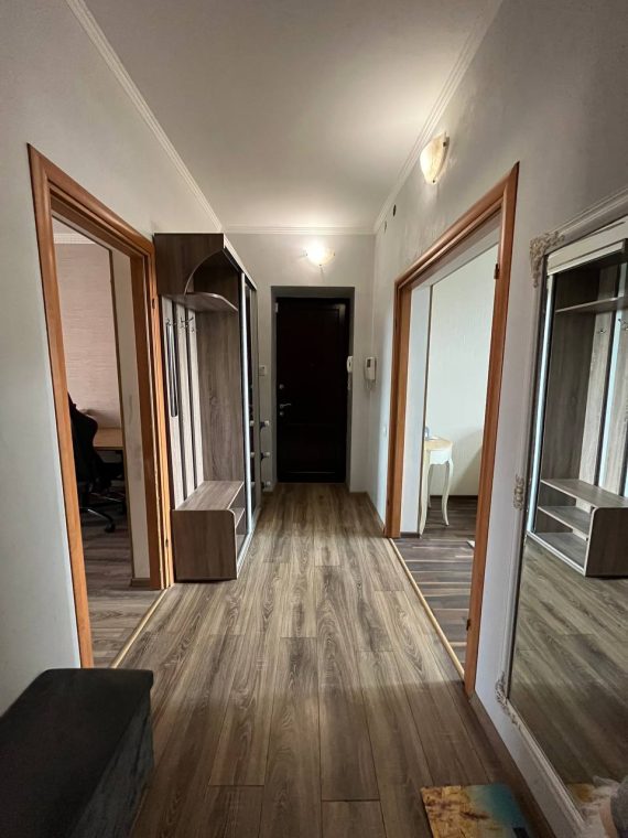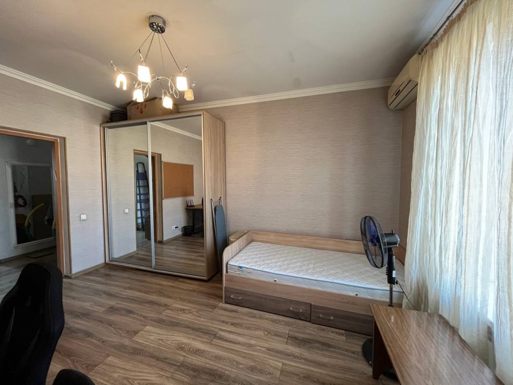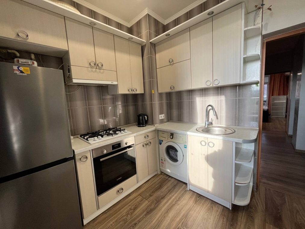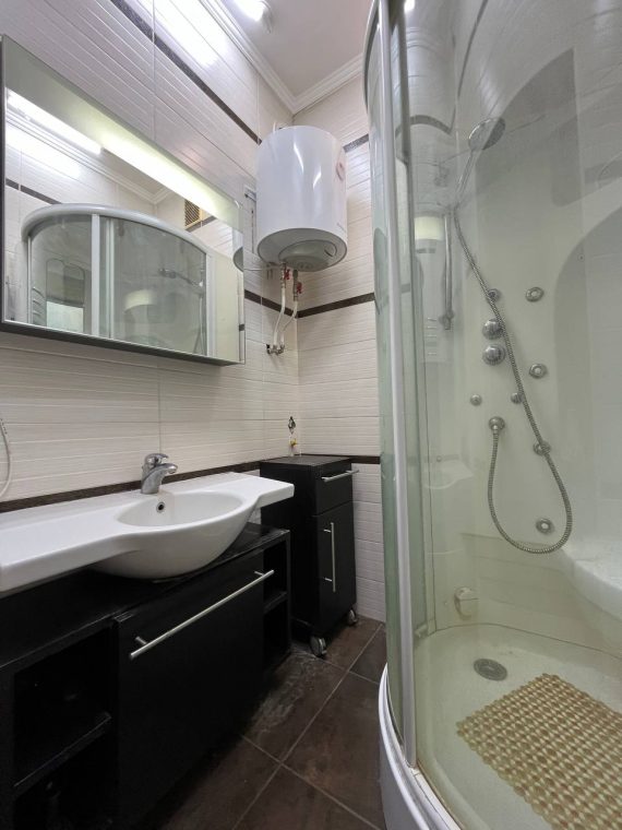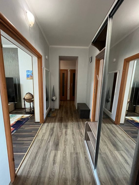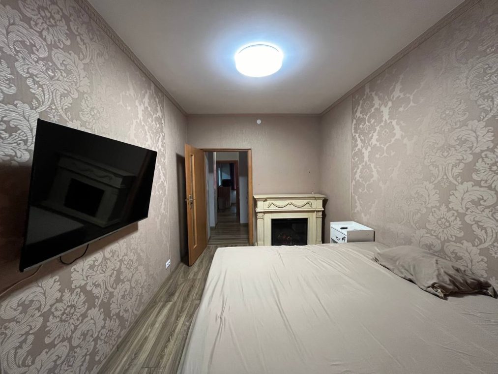 Квартира укомлектована меблями та технікою: холодильник, пральна машина, газова плита, 2 духовки, витяжка, мікрохвильова піч, 2 телевізори, бойлер, камін, 2 кондиціонери. Є балкон – засклений, 2 санвузли.